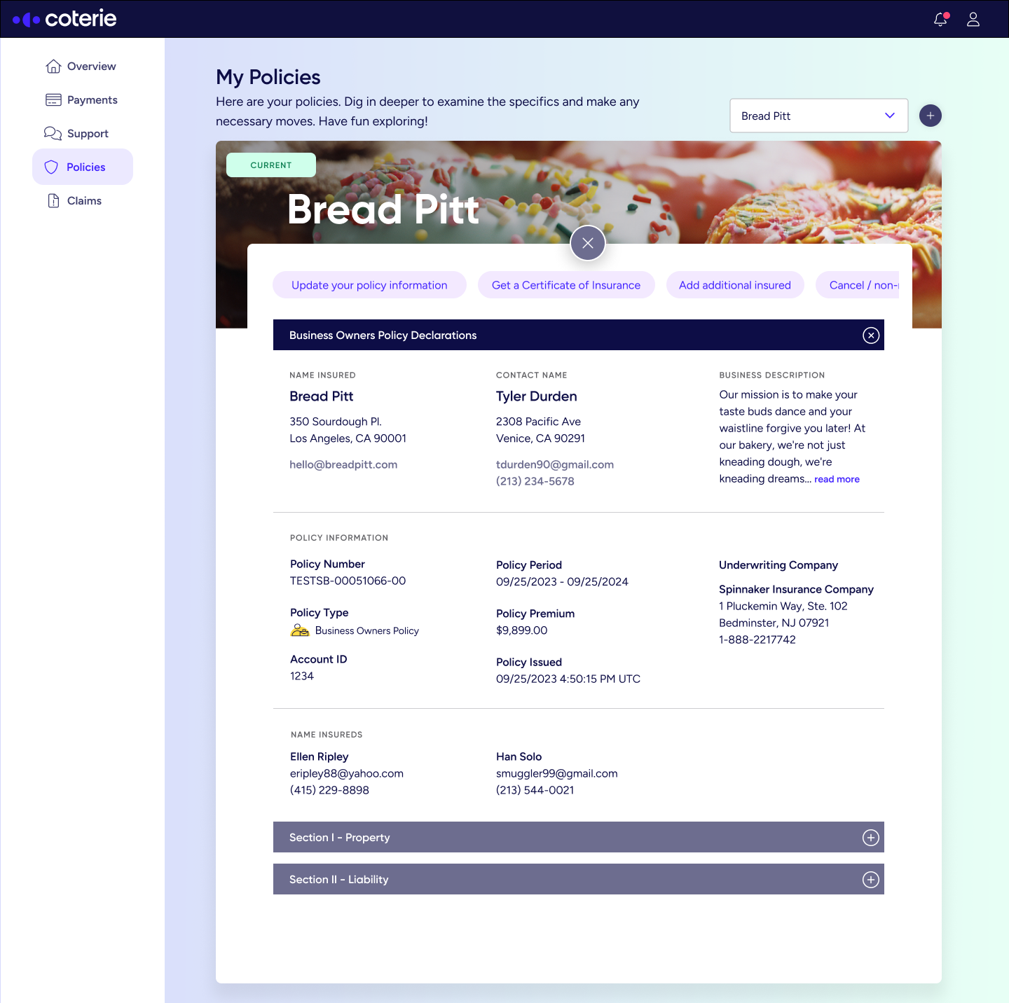 In the spirit of collaborative, agile design, I needed to continue iterating on the product by further researching and identifying user pain points and business opportunities. Below are some design explorations of the policyholder billing center and agent dashboard.